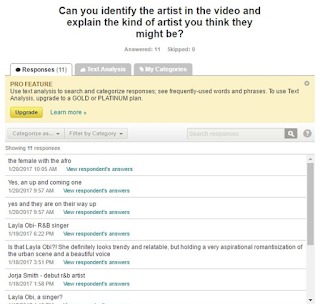 Yet again, all but one anomaly claimed that they would want to find out more and here more of the artist music in the future. I felt this one negative comment was most likely due to someone not being a fan of the music genre or simply someone 'trolling' the survey.